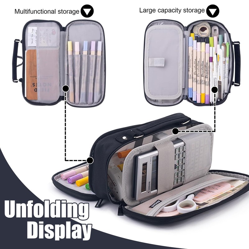 - Double opening design: pencil case double opening series, 3 zips, a multifunctional storage box with large capacity. Can be installed and easy to find, sorted by categories.