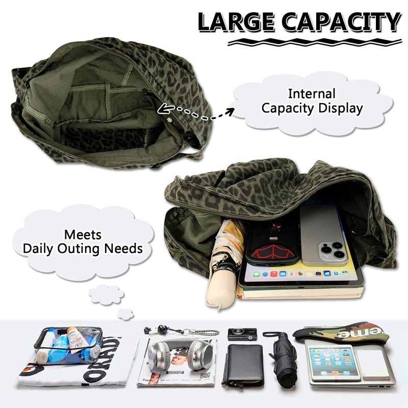 X SIM FITNESSX Leopard Shoulder Bag Shopper Shoulder Bag Macchiato Shoulder Bag Cavans Large Bag with Zip, Camouflage Green, L