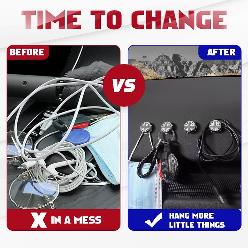 x xotic tech Hanger Stick on Car Dashboard Hook Holder Sticky Wall for Mask Key Fob USB Earphone Cable Sunglasses Compatible with Mini Cooper Accessories Universal (2 Pack, Black/Gray UK Union Jack)