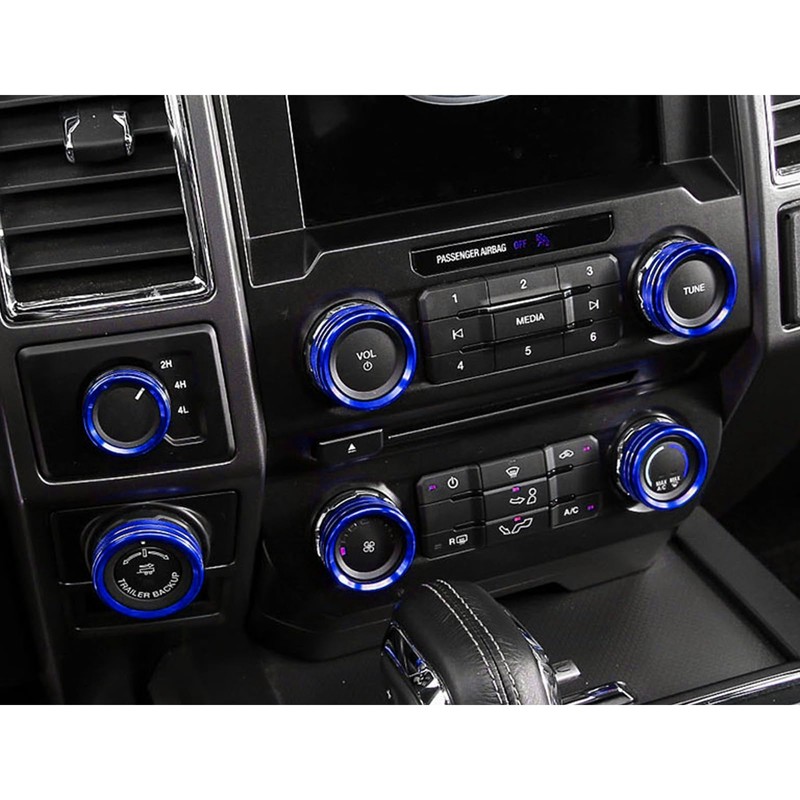 - Fitment: Compatible with Ford F150 XLT 2016-2020.(Not fit for F150 without the 2WD/4WD or trailer back up switch.) Please check if your car's interior matches the photo in the gallery.(NOT compatible with Raptor Lariat Platinum King Ranch Limited if you console knob rings is not black plastic as the picture shows.) If your truck does not have 2WD/4WD or trailer back up knob, four of the rings will still fit the center console volume tune controls and the AC fan and cold/heat