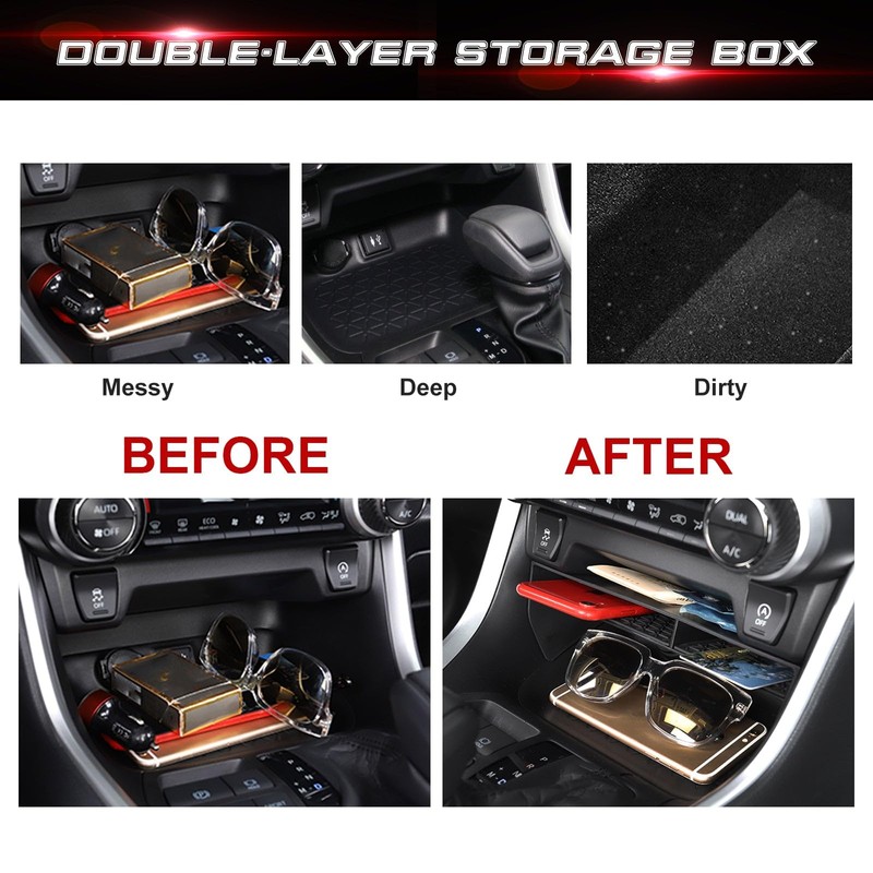 • Extra Storage layer: Perfect for storing small stuffs such as phone, business card, lighter, cigarette, pen or even your car keys etc and giving you the most efficient way to organize the items you use every day. Please pay attention to the the box can only store items with a thickness less than 0.67 Inches.