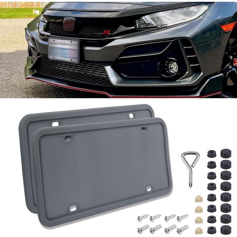 x xotic tech Silicone License Plate Frames, Front Back License Plate Bracket Holder, Rust Proof, Rattle Proof, Weather Proof Car Accessories(Gray, 2Packs)