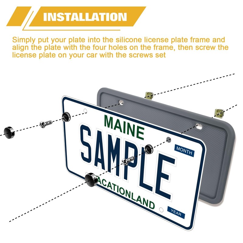 - Easy Installation: The screws and nuts are provided in the package. Simply put your plate into the silicone license plate frame and align the plate with the four holes on the frame, then screw the license plate on your car with the screws set. Just make sure the drainage holes are on the bottom side before you put your plate in