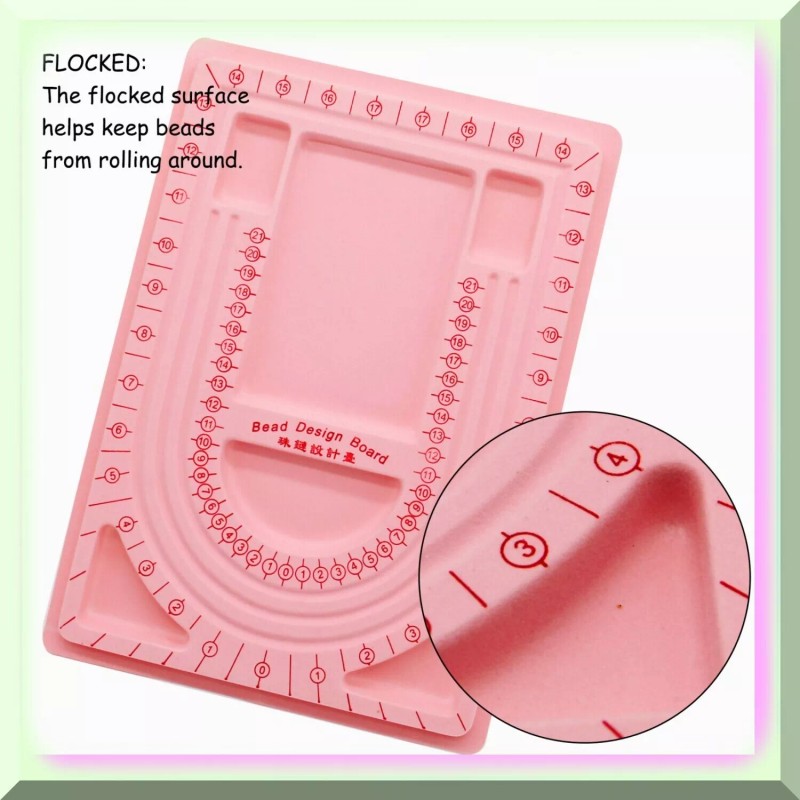 Made from durable polyethylene and covered in soft flocking fabric, the board is both sturdy and comfortable to use. It comes in a stylish pink color and has a compact size of 32.7 x 24 x 1.7cm (12.8 x 9.5 x 0.7 inches), making it easy to carry and store. The board weighs only 0.13kg (approximately), so it won't add any unnecessary weight to your beadwork supplies.