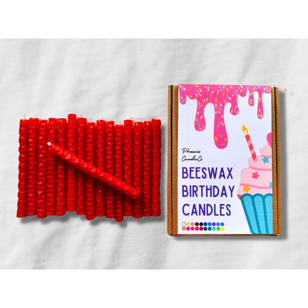 x16 Beeswax Birthday Candles | Hand-Rolled | Eco-Friendly (Bright Red)