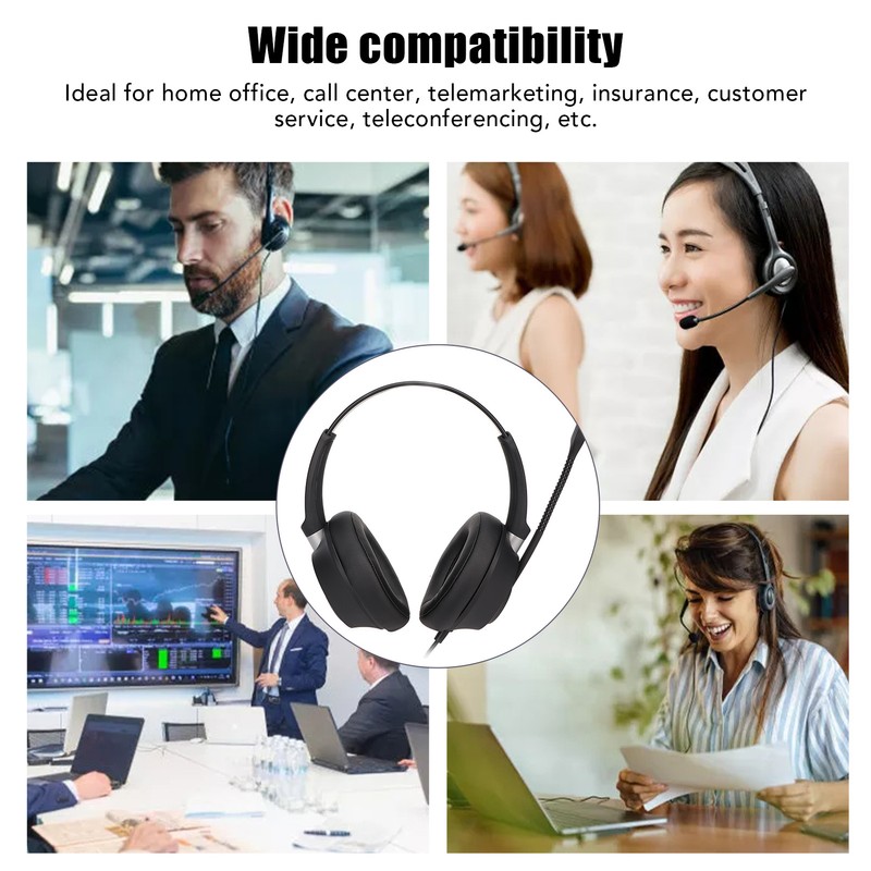 1、HD MICROPHONE: Call center headphone has a built in HD microphone that can be twisted at will to make your voice loud and clear, providing clear conversations even in noisy environments. 2、ULTRA LIGHTWEIGHT: Computer headset features soft ear cushions and a flexible headband that won't weigh down your ears. Ultra lightweight design ensures you stay focused on your conversation. 3、PLUG AND PLAY: Telephone headset with USB plug, plug and play, no driver required, easy to use. Support speaker volume adjustment, volume one touch mute, microphone mute. 4、RUGGED CONSTRUCTION: Business headset is designed with rugged construction and ABS material to ensure superb performance and make it durable. Long headphone cable provides flexibility of movement. 5、APPLICABLE RANGE: Customer service headphone is suitable for devices with USB port, ideal for home, office, call center, telemarketing, insurance, customer service, teleconferencing, etc.