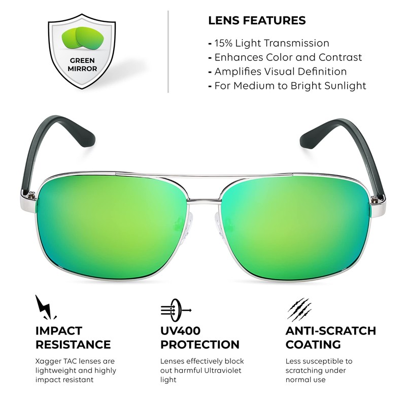 • 1.1MM TAC POLARIZED LENS - Enjoy the great outdoors glare-free! Whether you're driving, fishing, playing golf or just enjoying a sunny day, Xagger’s polarized aviator sunglasses for men will significantly reduce glare, providing clear and crisp vision in all conditions.