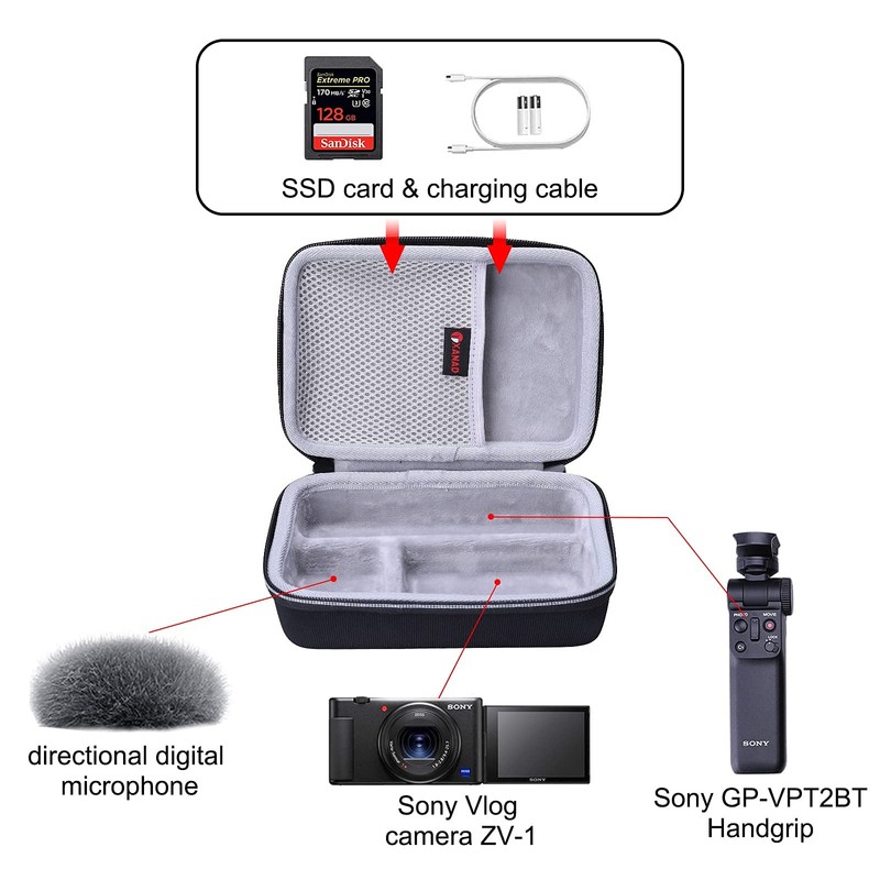 - Ajuste perfecto: la funda está diseñada para cámaras Sony ZV-1/ZV-1F/ZV-1 II y Vloggers con kit de accesorios Vlogger. Dimensiones externas: 7.8 x 5.1 x 2.6 pulgadas, peso: 228.5 g