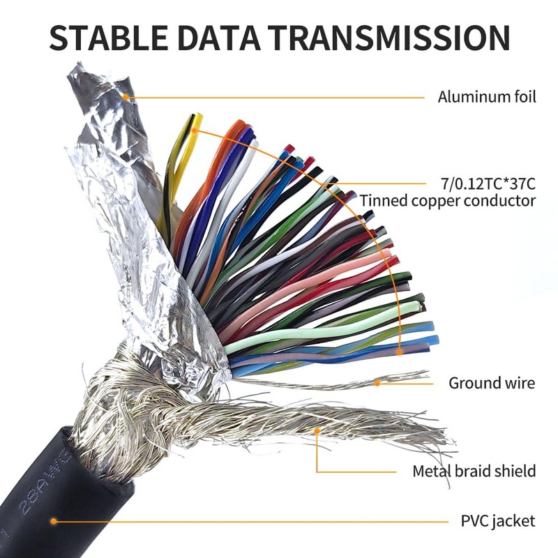 - Stable Connection: 28AWG tinned copper conductors and gold-plated pin provide smooth connection basic, while metal braiding and AL-foil shielding structure can prevent external interference for safe and stable connection.