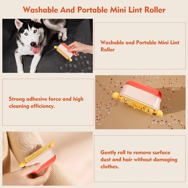 • 【Strong adhesion for all surfaces】Our mini lint roller can effortlessly pick up pet hair, lint, crumbs, and dust from clothes, sofas, carpets, and car seats. It’s safe for fabrics and gentle enough for delicate materials. Plus, it features a hair-scraper function that can collect long hair.