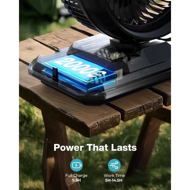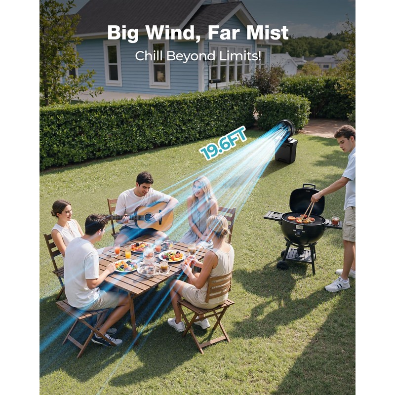 - Large Water Tank & Long Battery Life: With an 11L large water tank misting fan and a 20000mAh battery, this outdoor misting fan allows you to enjoy hours of continuous cooling. No more frequent refills or recharges—stay cool all day, no fuss, only chill.