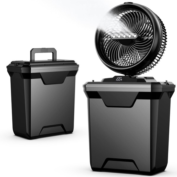 - LED Display & Easy Storage: Stay in control with the camping misting fan’s LED display, showing mist levels, fan speed, and timer settings. It folds into its water tank for compact storage, and the built-in handle makes it easy to carry.