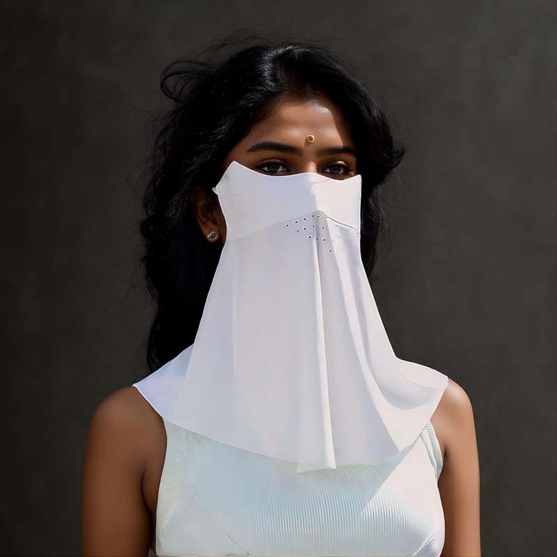 xbuk Traceless Sunscreen Mask,Summer Thin Breathable UV Face Protection Sun Mask,Face Cover with Ear Loops Scarf for Women (Silk Blend, White)