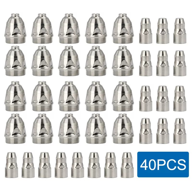 XCAN 40Pcs P-80 Plasma Cutter Torch Parts Kit Tip Cup Consumables 1.5mm Nozzles