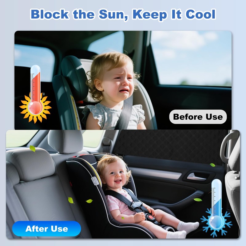 - Superior Heat & UV Blockage: The sun shade for car window baby is made of upgraded reflective insulation material. Effectively blocks 99% of harmful UV rays and intense glare, protecting your skin and significantly reducing cabin heat buildup. Helps prevent interior fading and maintains a cooler, more comfortable temperature