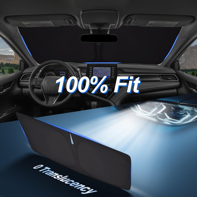 - 100% Compatible with 2017-2025 Camry: This sunshade for car windshield is specifically designed for the 2017-2025 Camry, providing perfect coverage for your front windshield. It blocks light leaks and protects your car’s interior, including seats and dashboard, from UV damage and heat, helping extend the lifespan of your vehicle