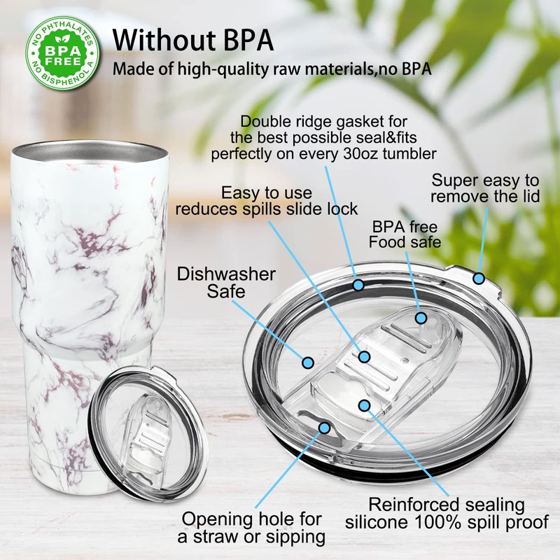 XccMe 2PACK 30 oz Stainless Steel Tumbler Replacement Lid Spill Proof Splash Resistant Lids,Straw Friendly, BPAFree.