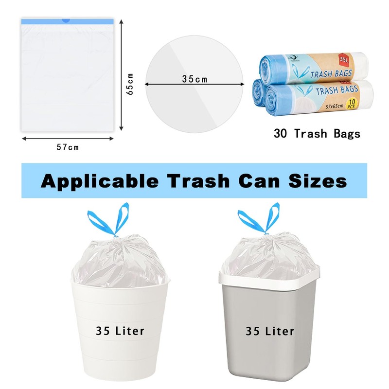 Xcdhemde 3 Rolls of Bin Bags 35 L, Bin Liners with Practical Drawstring, Tear-Resistant Bin Liners (3 x 10 Bags), Waterproof Trash Bags for Home or Office (Size: 57 x 65 cm, White)