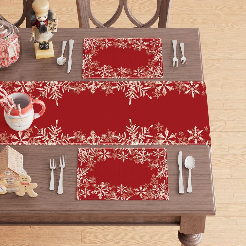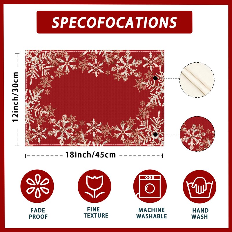 XCHI Red Snowflakes Winter Christmas Xmas PlacematsSet of 4 Table Mats for Party Home Kitchen Dining Table Decorations 12x18 Inch