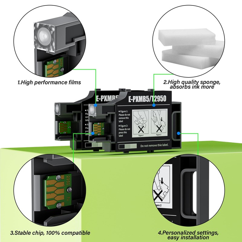 - High performance: the latest chip, perfect compatibility for WF-110 EC-C110 printer; high-quality sponge can absorb more waste ink; polymer film can make the printer and waste ink tank closely connected; personalized design makes replacement easier
