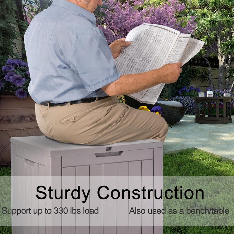 - Sturdy Construction: The deck boxes outdoor waterproof 30 gal has stiffener to support up to 330 lbs load, can be used as a deck box bench or a outdoor table