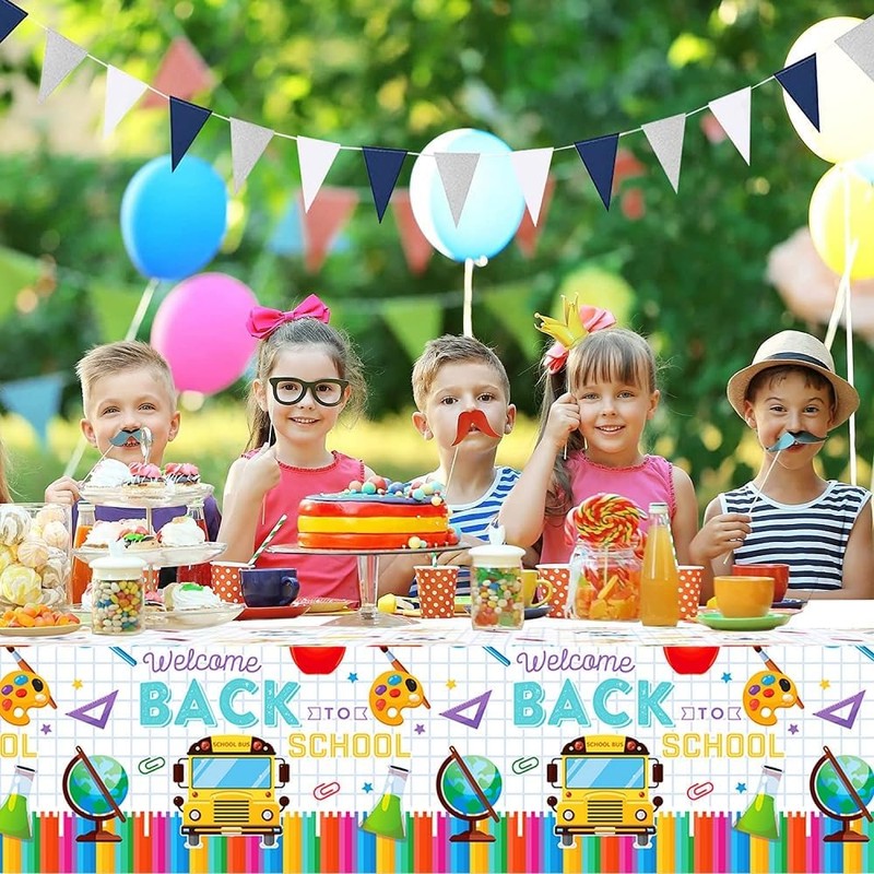 - Back to School Essentials: package contains 2 pieces back to school tablecloths,make your party more noticeable, bringing you and the guests a visual enjoyment.