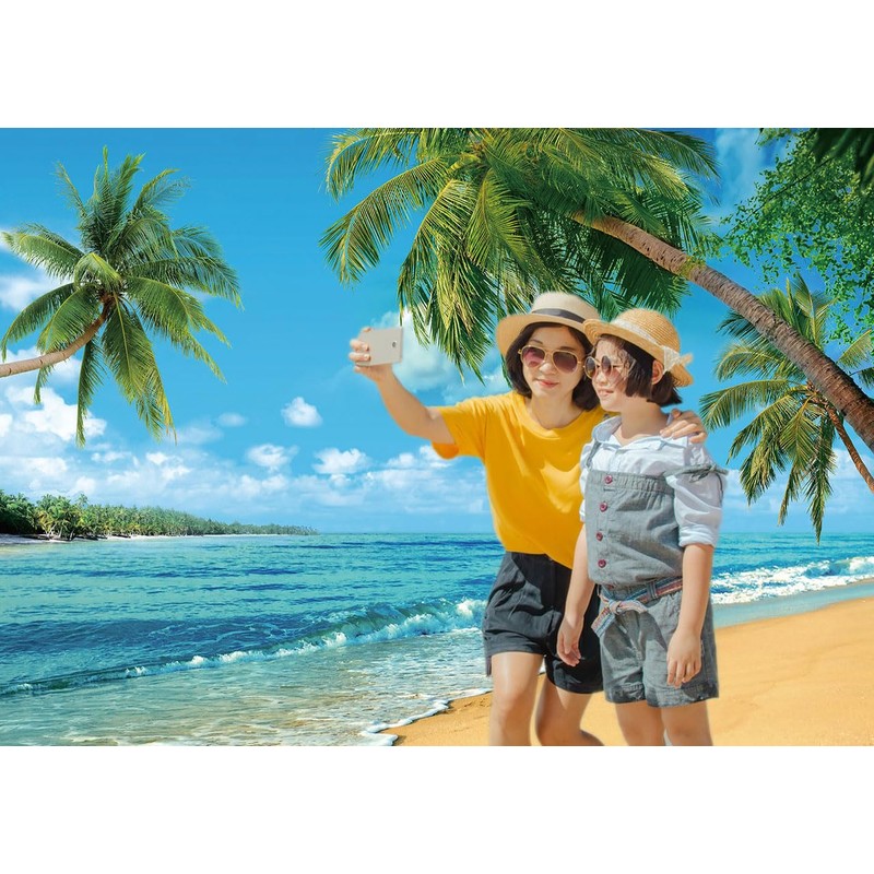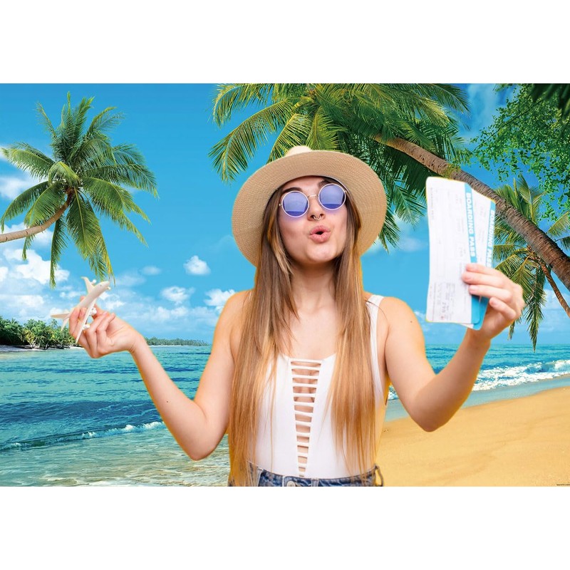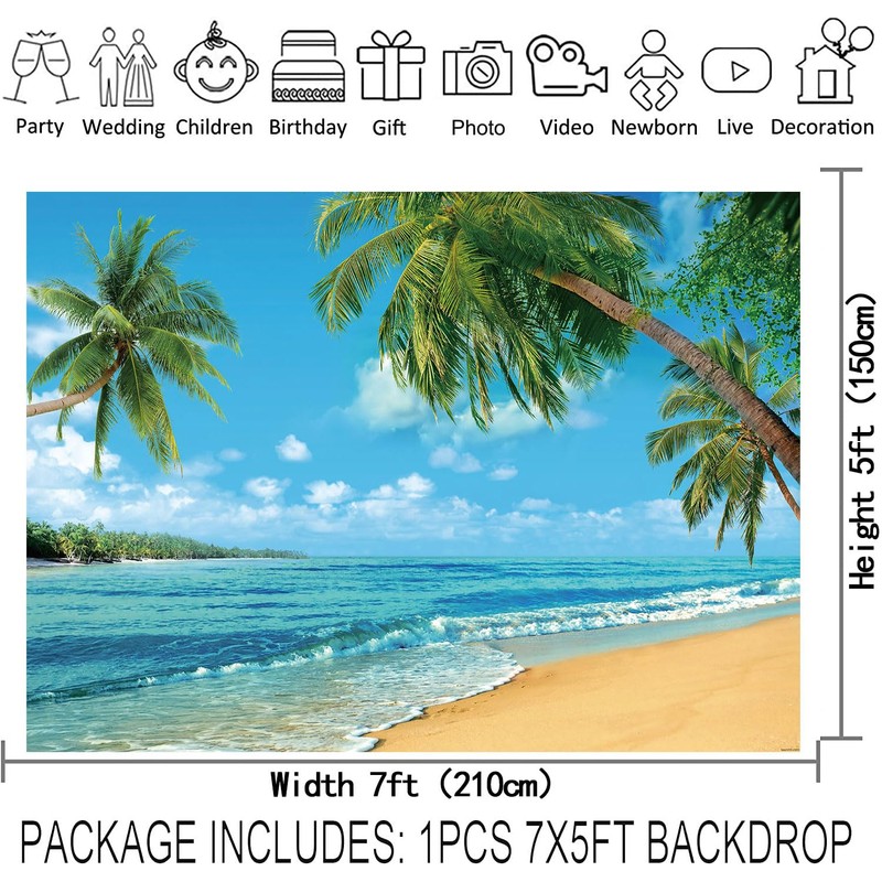XCKALI Summer Beach Backdrop Tropical Hawaii Beach Ocean Photography Background Summer Luau Theme Palm Leaves Seaside Party Decoration Banner Photo Booth Props 7x5FT