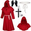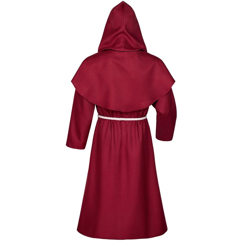 XCMVCN Monk Robe Medieval Renaissance Robe, Men's Hooded Monk Robe Priest Costume with Cross Necklace, Gloves and Cord, Halloween, Carnival and Role Play Costumes (Red, XL)
