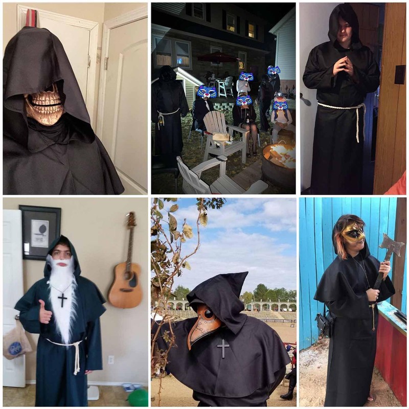 - Monk robe costume: you will receive 1 robe, 1 hood, 1 cross chain, 1 belt and 1 pair of gloves. With this outfit you can go to Halloween, carnival and other role play parties to leave a perfect impression.