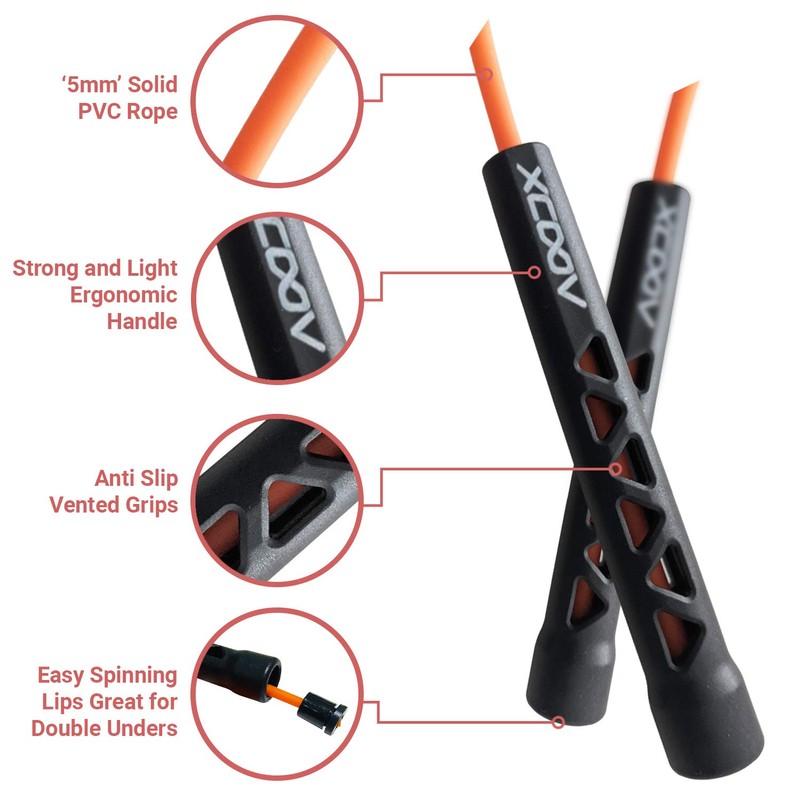 - Ventilated Non-Slip Handles – Xcoov jumping ropes for workouts and cardio feature heavy-duty polypropylene plastic handles that help wick away sweat and moisture when you’re working out to give you a better grip on every turn