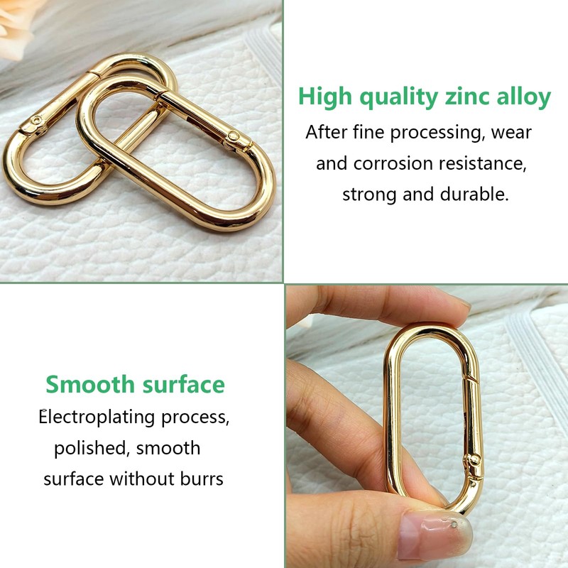 - High-quality materials: the oval carabiner is made of high-quality zinc alloy, which is lightweight and high strength, has strong corrosion resistance, is not easy to deform, not easy to rust, and can be used for a long time.The surface is smooth and does not scratch hands or objects, you can use it safely