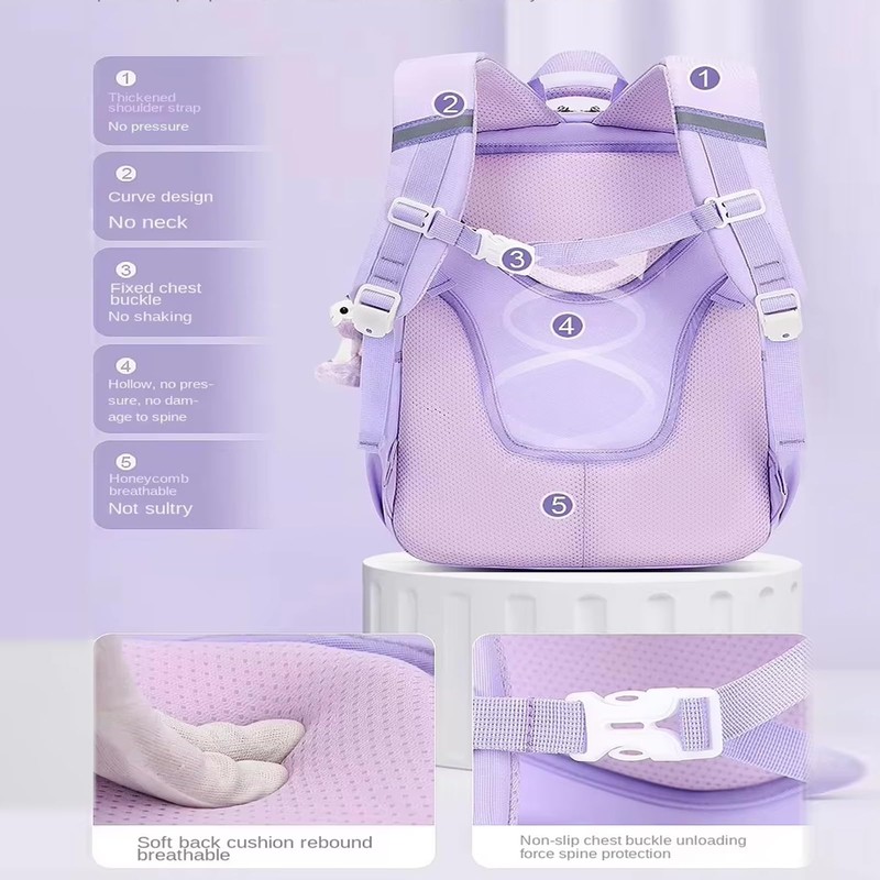 - This school girl backpack cares Girls' Spinal Health: This girls school backpack features "ergonomical design", backpacks for girls. thickened and wider shoulder straps and innovative breathable mesh back panel for superior comfort and back support, reduce their burden, release the stress on shoulders