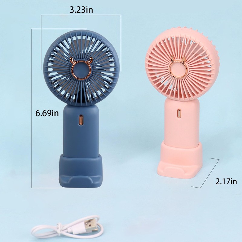 XDAMORSP-Rechargeable Handheld fan with 3 Speeds,2000mAh USB Portable Mini Fan with Base for Travel,Stand on the Desktop (Blue)