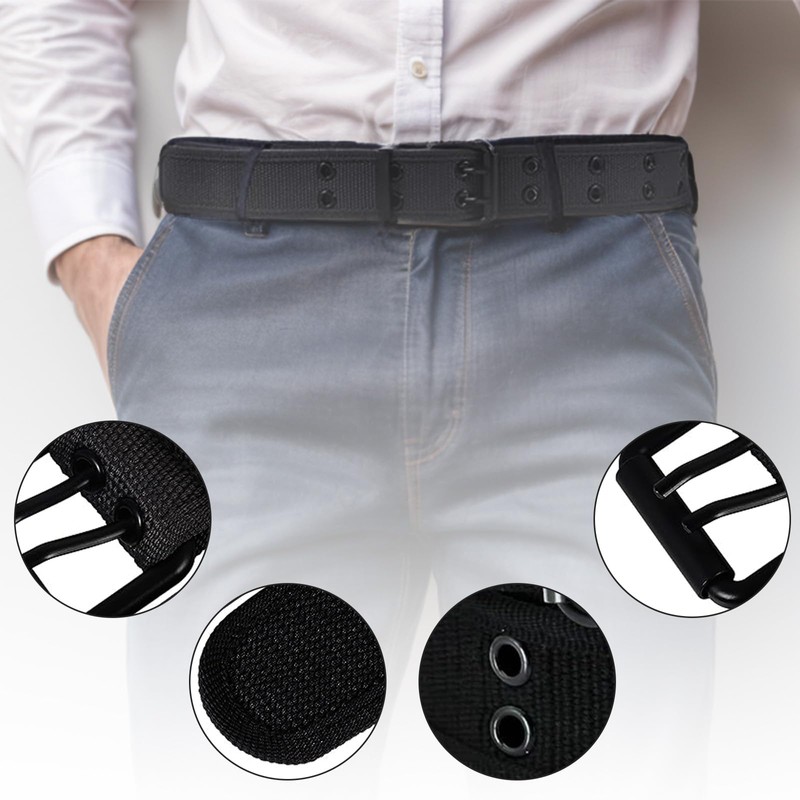 The rivet belt for men and women, adjustable double hole black studded belt fabric belt is a stylish and versatile belt that is suitable for both men and women. This work belt is made of high-quality fabric material and is characterised by its robustness and durability.