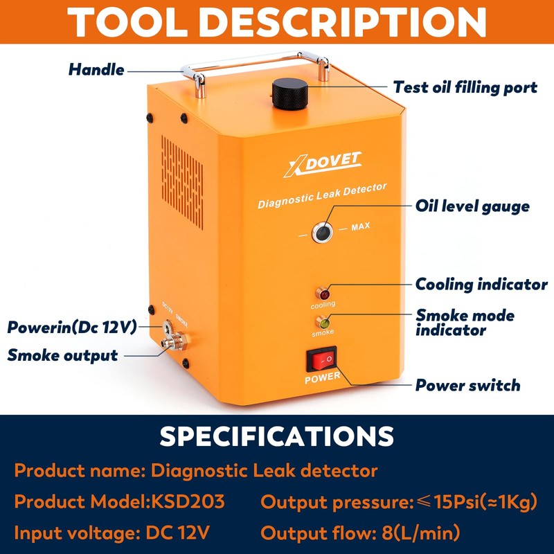 Smoke Machine Automotive with Built-in Air Pump, XDOVET KSD201 Professional Smoke Tester Automotive, Vehicle Leak Diagnostic Detector Tools Kit for Leaks Test in Vacuum, Fuel, and Other Cars System