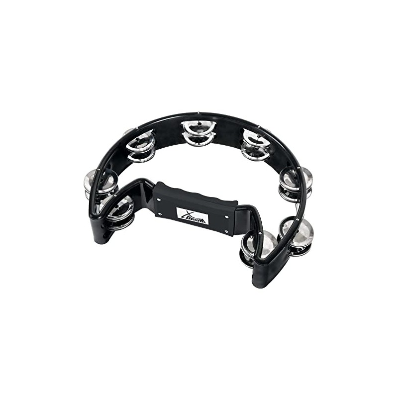 XDrum Hand Tambourine Half Moon Shape (Tambourine, 16 Pairs of Chrome-Plated Steel Jingles, Plastic) Black
