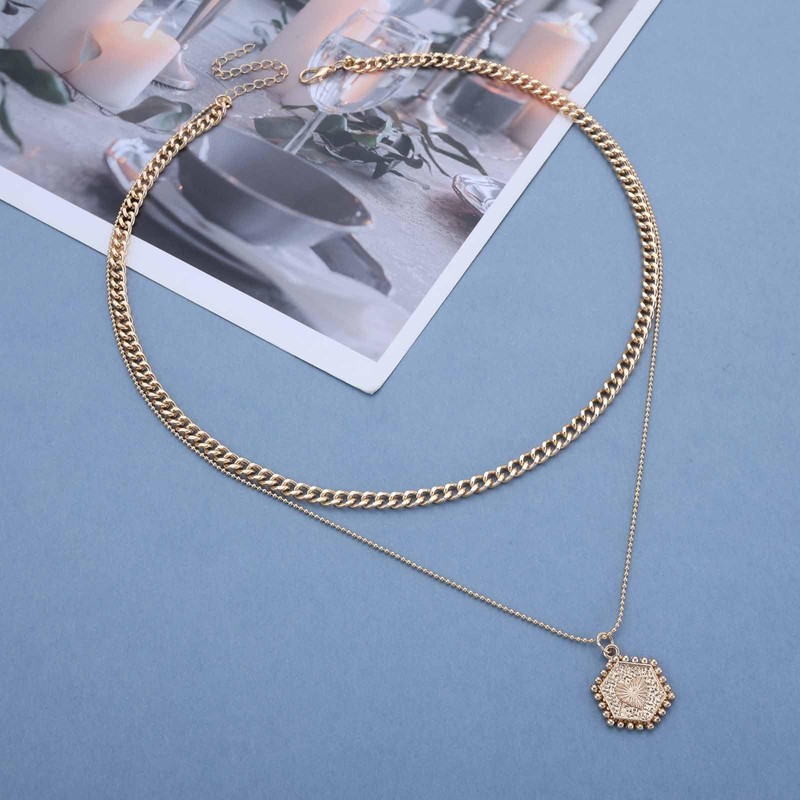 - Vintage geschichteten Sechseck Anhänger Halskette ist aus hochwertigem Material, exquisite Verarbeitung, langlebig und kratzfest gemacht