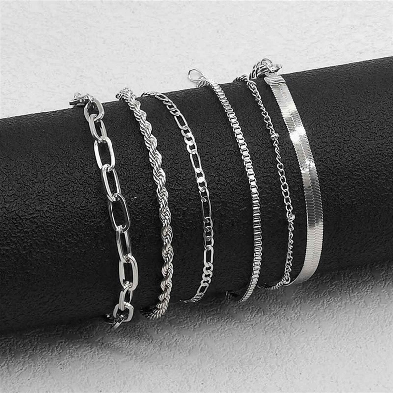 Xduargs Boho Layered Snake Chain Bracelet Paperclip Link Chain Bracelet Twisted Rope Hand Bracelet Vintage Figaro Chain Bracelet Hand Chain Adjustable Stackable Bracelet Set for Women(Silver)