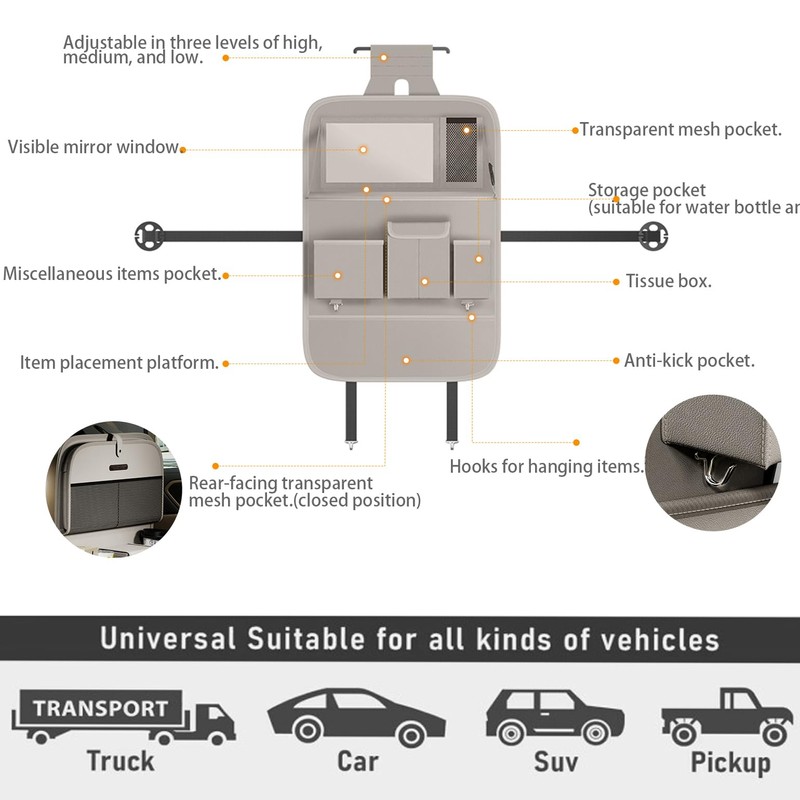 • ✔Hanging Mount Design: Designed to hang securely on the back of the car seat, saving space while keeping items organized.