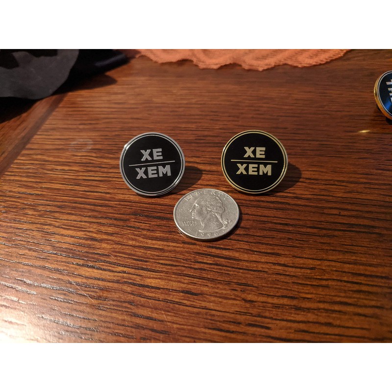 Xe Xem Pronoun Pin | Nonbinary Pronouns Black and Silver Circular Hard Enamel Pronoun Pin