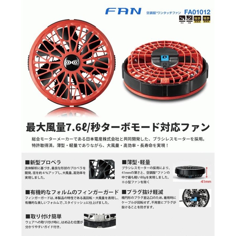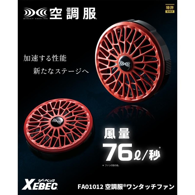 XEBEC FA01012 K90 888 Air Conditioned Clothes, 14.4 V Dedicated One-Touch Fan (2 Pieces) for Spring and Summer, Black