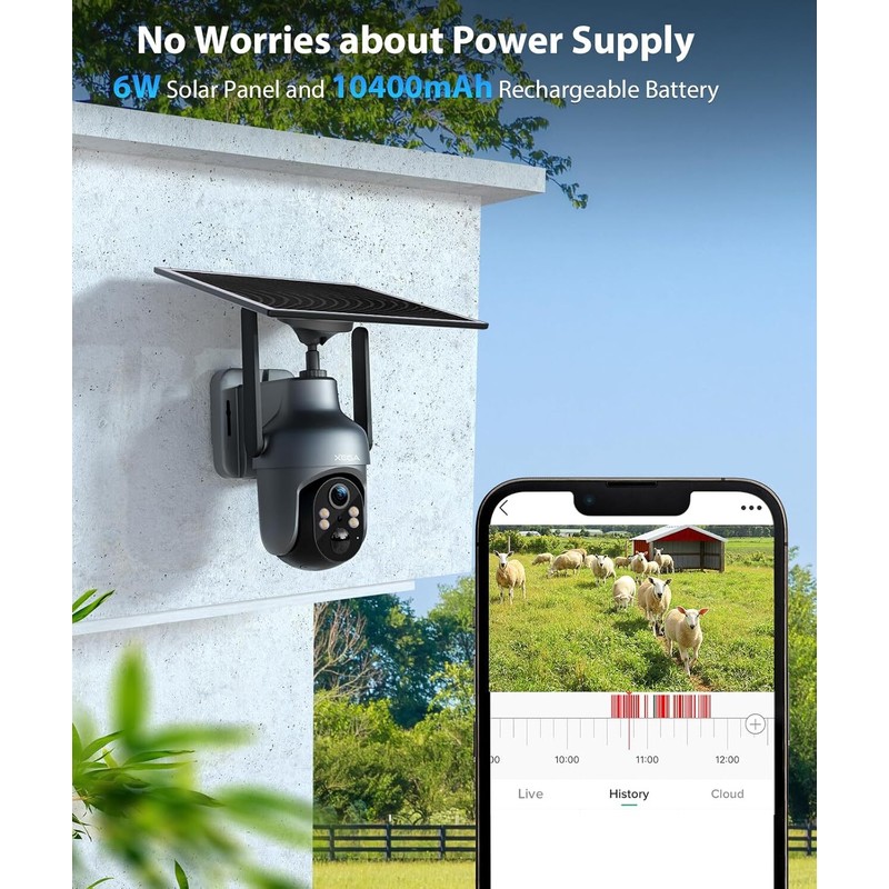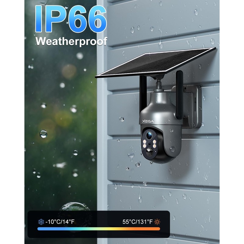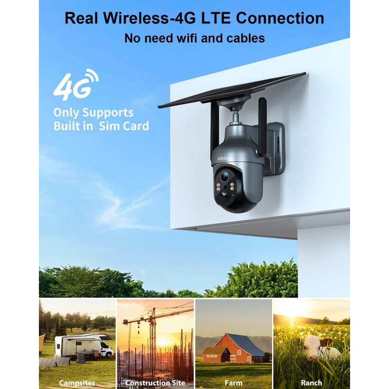 Xega 2K 4G LTE Cellular Security Camera with Built-in Sim Card, Solar Powered