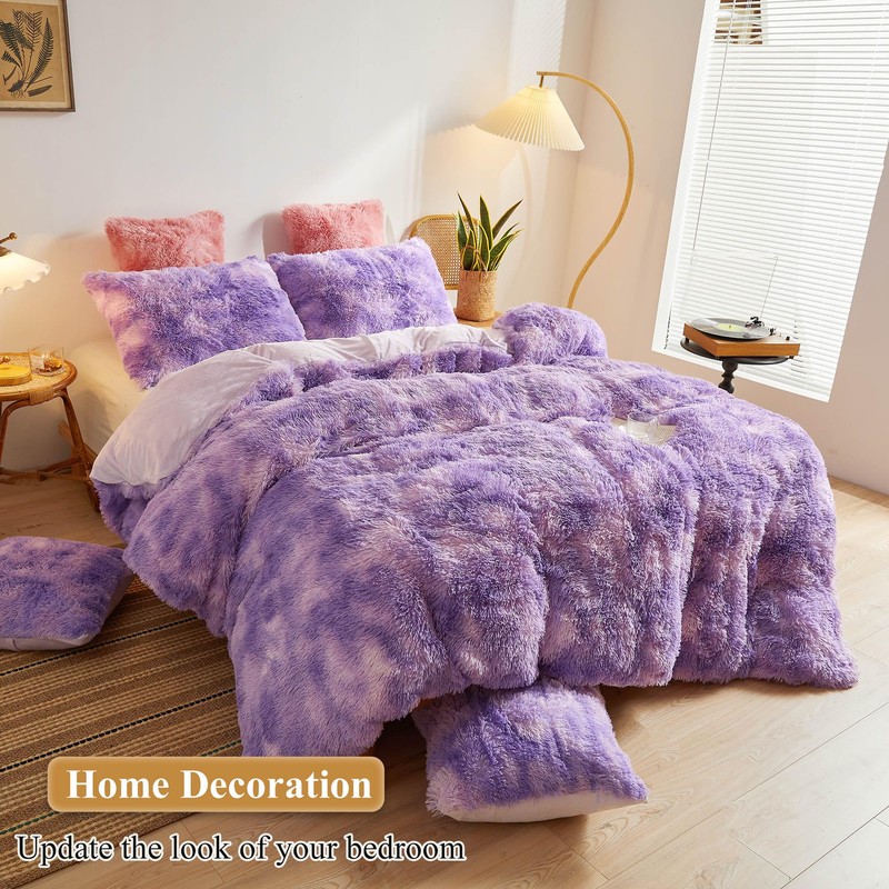 - HIGH QUALITY MATERIAL - these tie dye plush pillowcases are made of 100% polyester shaggy microfiber plush on the front and reverse to ultra soft crystal velvet mink. Add a touch of graceful color to your room. Resistance to fading, shedding, wrinkles and pilling, also offers the best warmth, comfort and breathability. We have the whole plush shaggy duvet cover set and single quilt cover sold separately from our store.