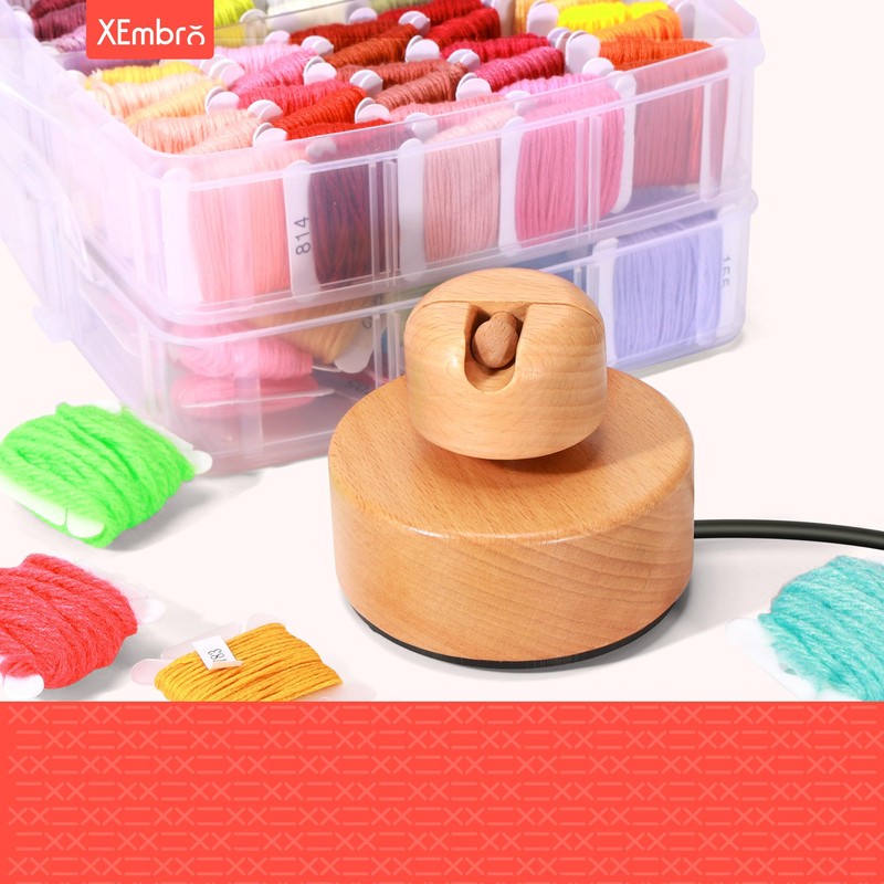XEmbro Electric Embroidery Floss Bobbin Winder - Beech Embroidery Floss Cross Stitch Thread Winder - Bobbin Winder Machine for Embroidery Work and Sewing Project