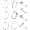 XENQITO Pack of 10 Nose Piercing Ring Stud Silver 20G L Shape Nose Piercing Ring Thin Surgical Steel Small Nose Ring Hoop Nose Ring Helix Ring Septum Rings Silver Nose Piercing Set Teeth Jewellery,