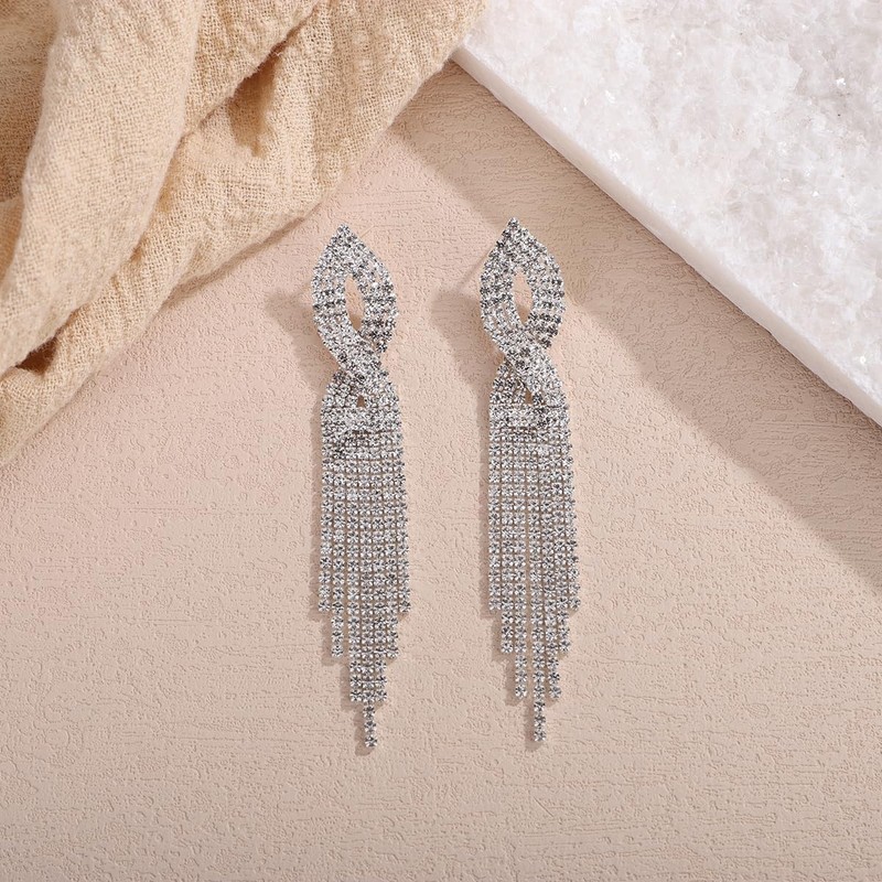 Xerling Rhinestone Tassel Earrings Sparkling Silver Chandelier Fringe Bridal Earrings Bling Statement Earrings for Women Wedding Prom Party