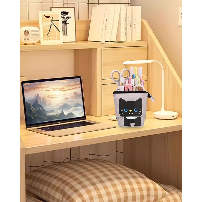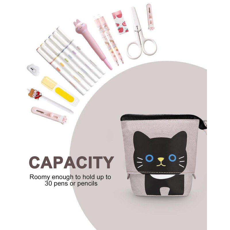 Xespis Pencil Case with Zip, Telescopic Pencil Case, Cat black