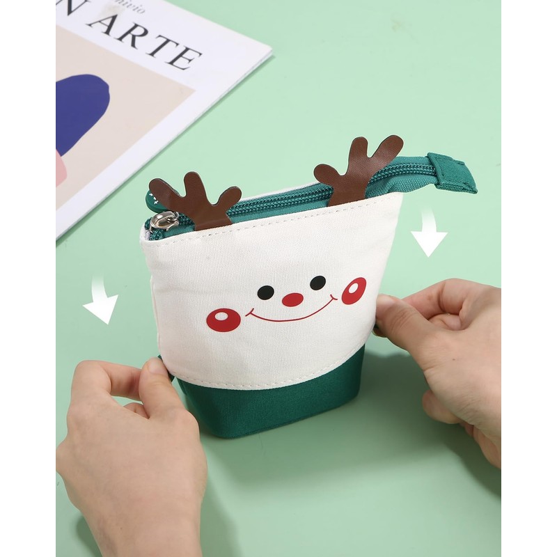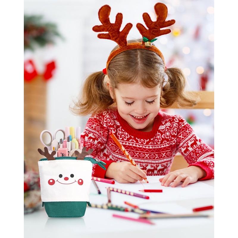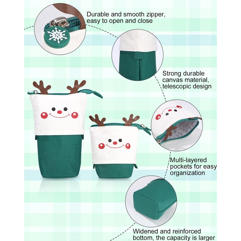 Xespis Pencil Case with Zip, Telescopic Pencil Case, Christmas green., pencil...