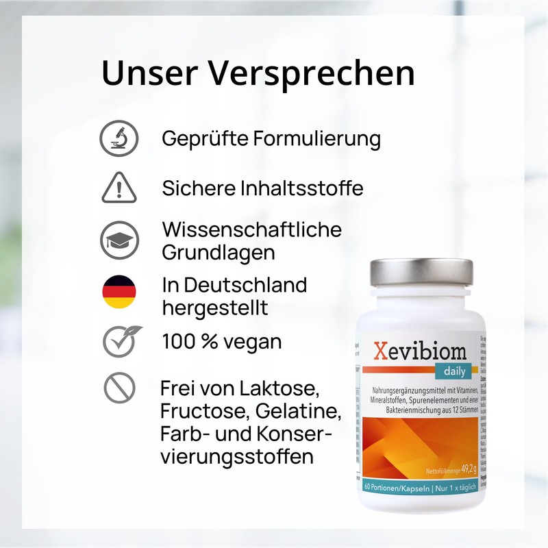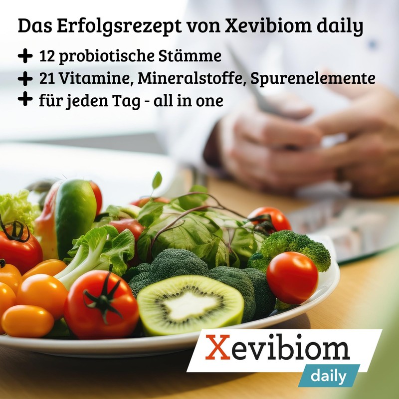 Xevibiom daily mit 12 probiotischen Stämmen und 21 Nährstoffen für den Darm und das Immunsystem