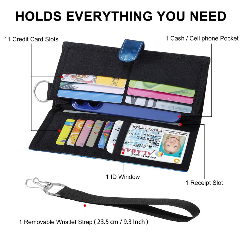 • Slim & Compact Design: Measures 7.8” x 3.7” x 0.6”; Designed for convenience, this ultra-thin wallet fits effortlessly into backpacks or handbags without bulk. Its sleek profile keeps your essentials organized while saving space.